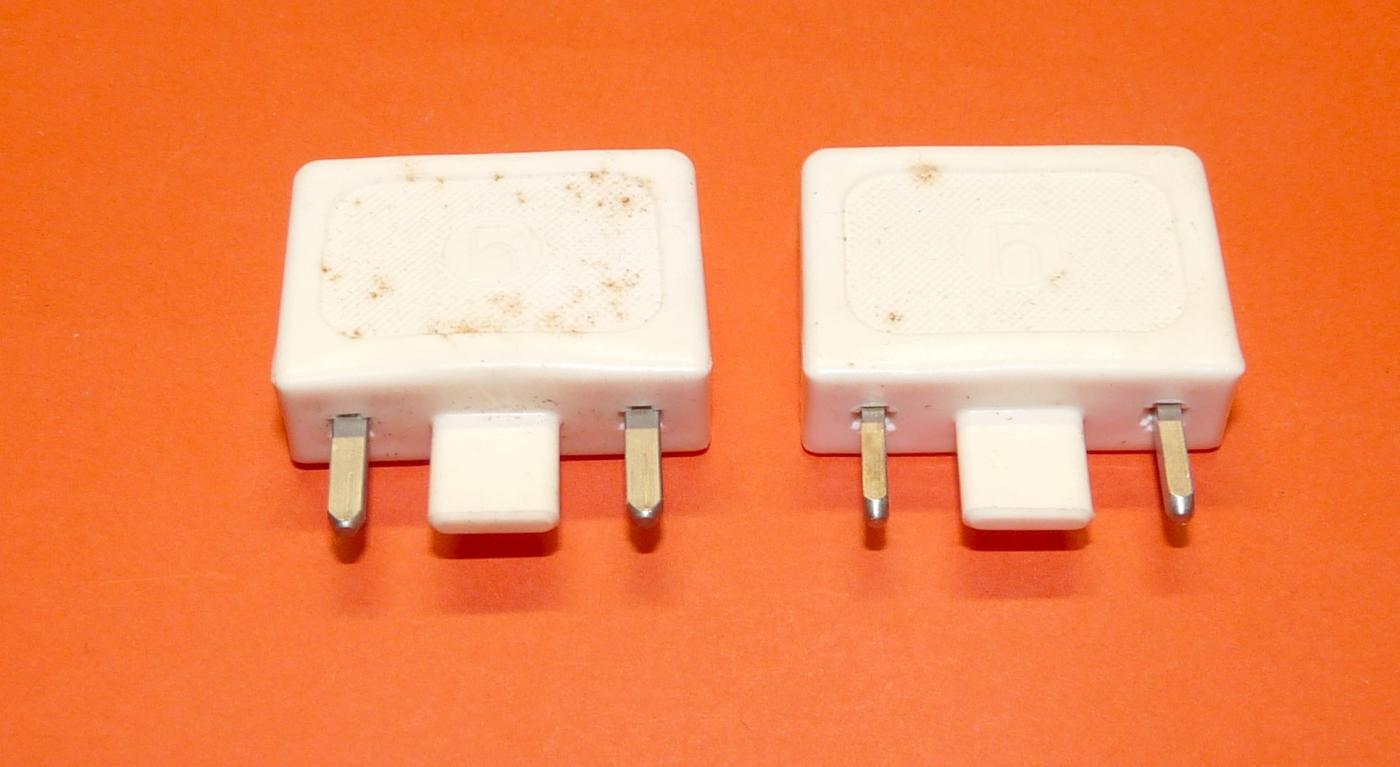 Antennenadapter UHF/VHF auf Bananenbuchse für Röhren- S/W-Fernsehgeräte, Hirschmann, je ein Stecker UHF und VHF. |