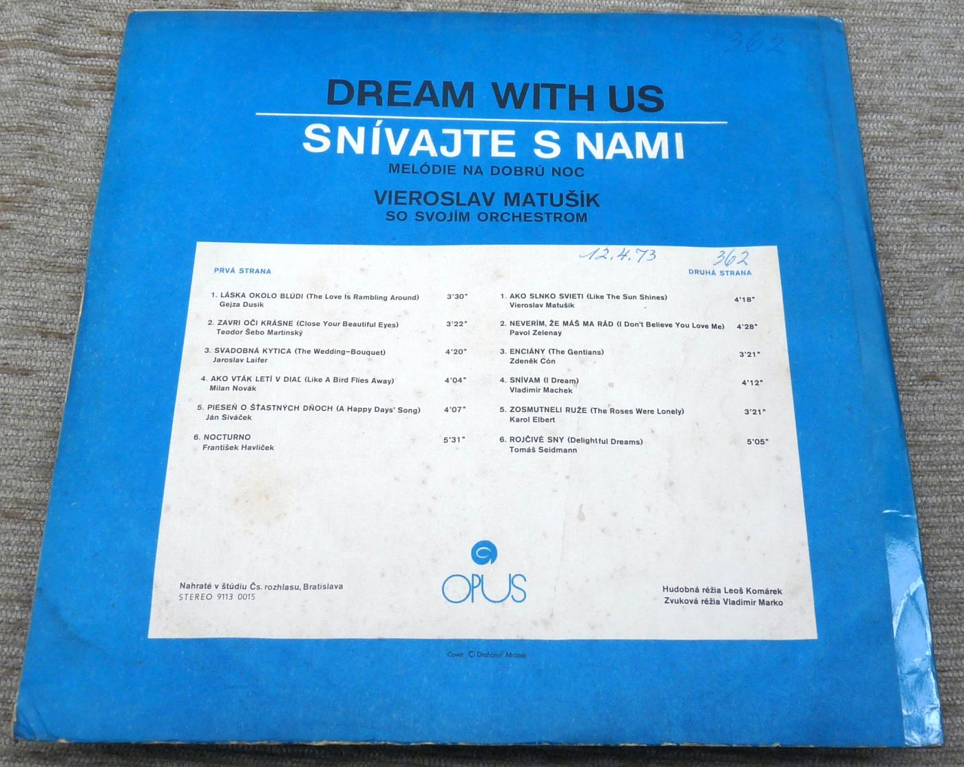 Opus, 91130015, Snivajte s nami/Dream with us, Vieroslav Matusik, CSSR, 1971 |