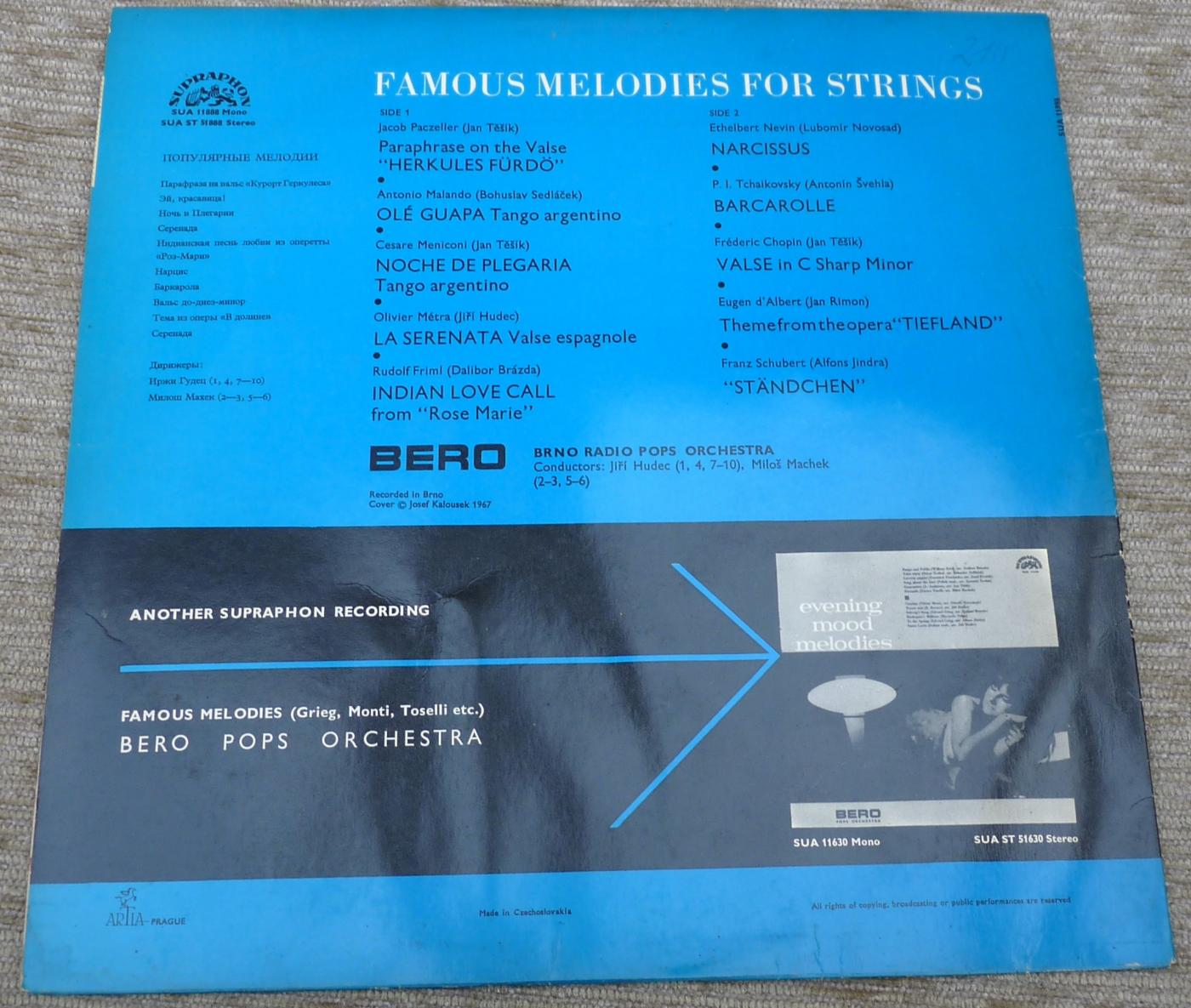 Gut erhaltene und gewaschene LP aus der CSSR. Famous Melodies For Strings gespielt vom Bero Pops Orchestra (Brno Radio Pops Orchestra)
