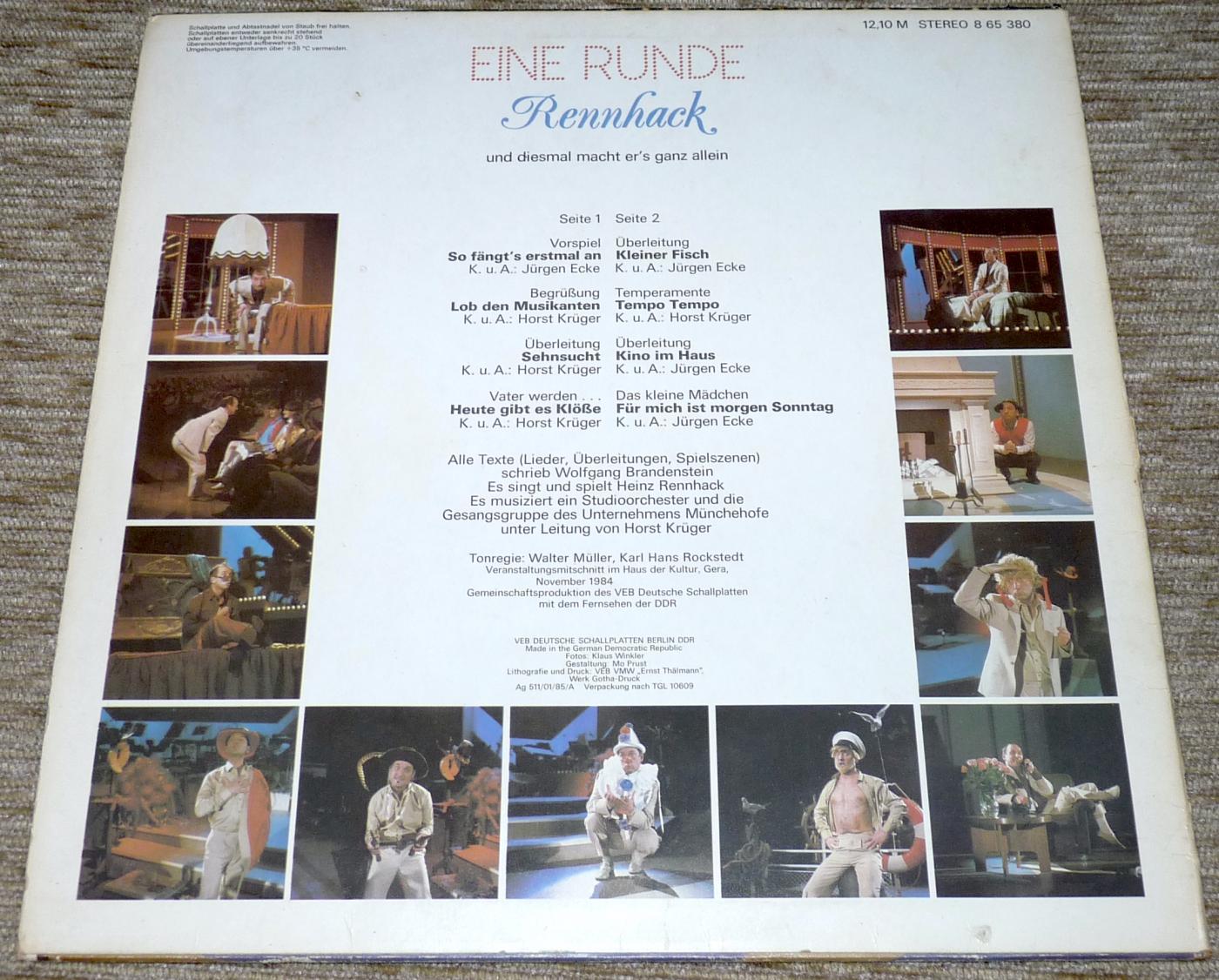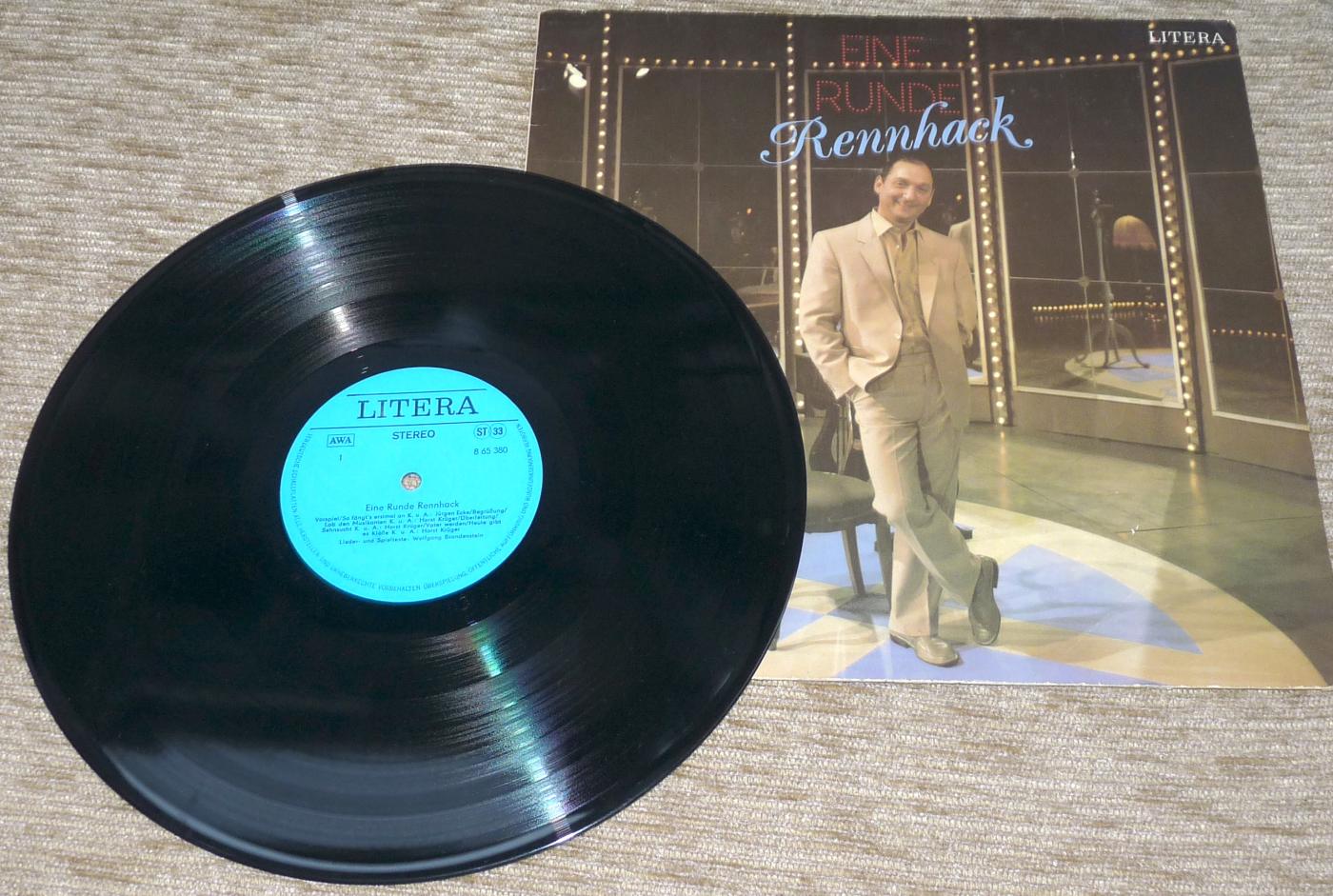 Gut erhaltene und gewaschene LP aus der DDR. Heinz Rennhack aus seiner Solo-Show: Eine Runde Rennhack. |