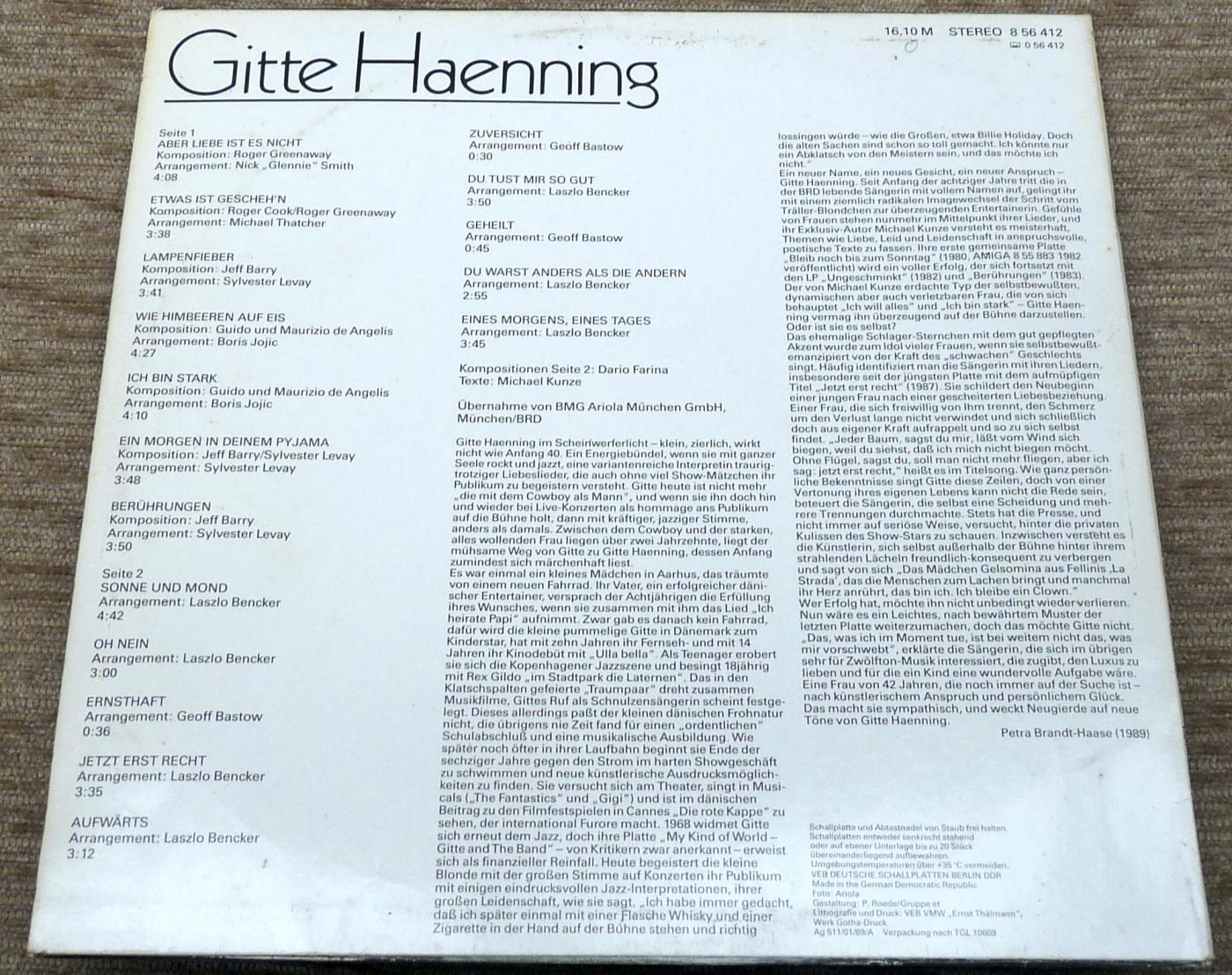 Amiga, 856412, Gitte Haenning, Lizenz BMG Ariola, DDR, 1989 |