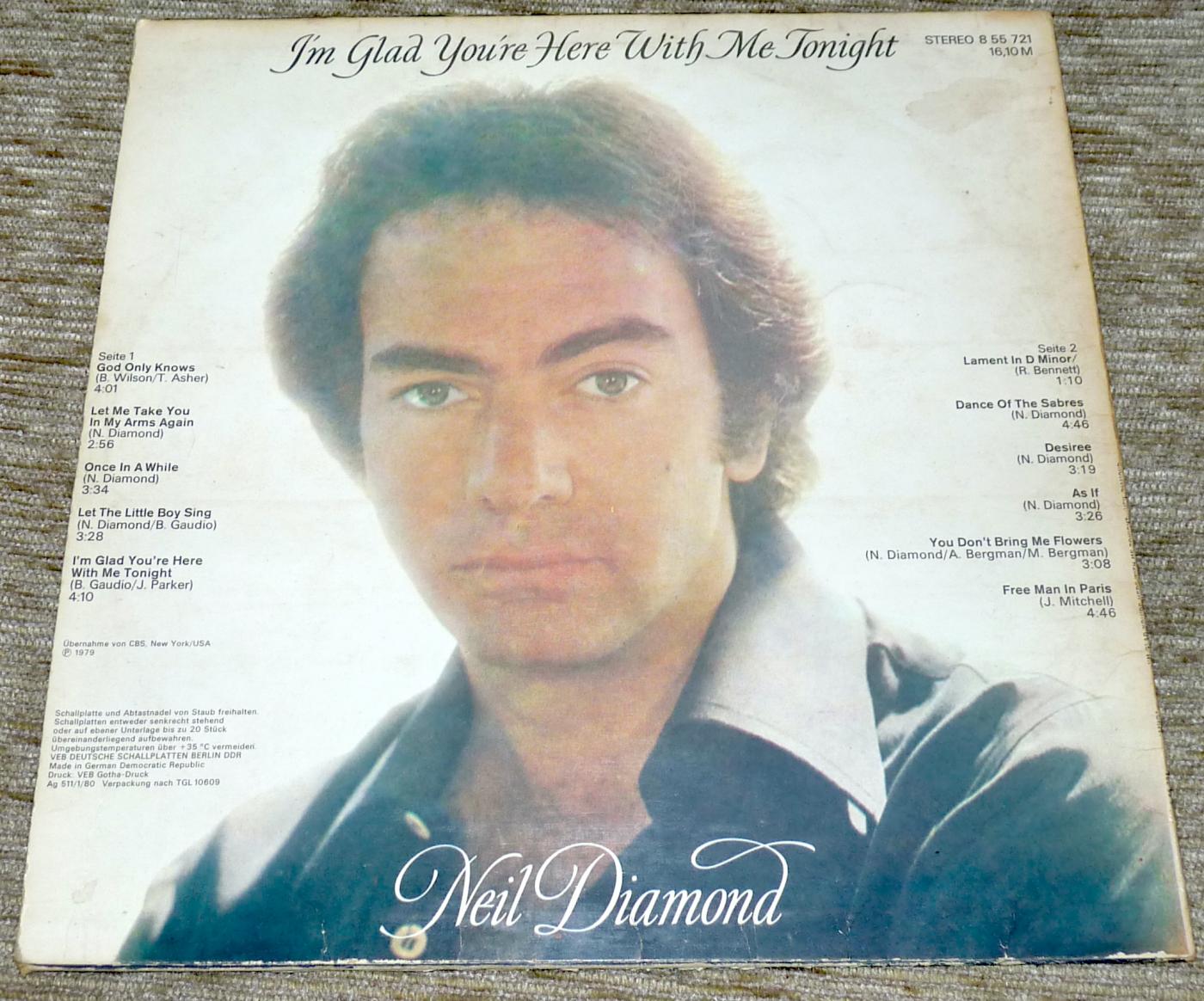 Gut erhaltene, gewaschene LP aus der DDR. Neil Diamond - I´m Glad You´re Here With Me Tonight, Übernahme von CBS, USA (1979) |