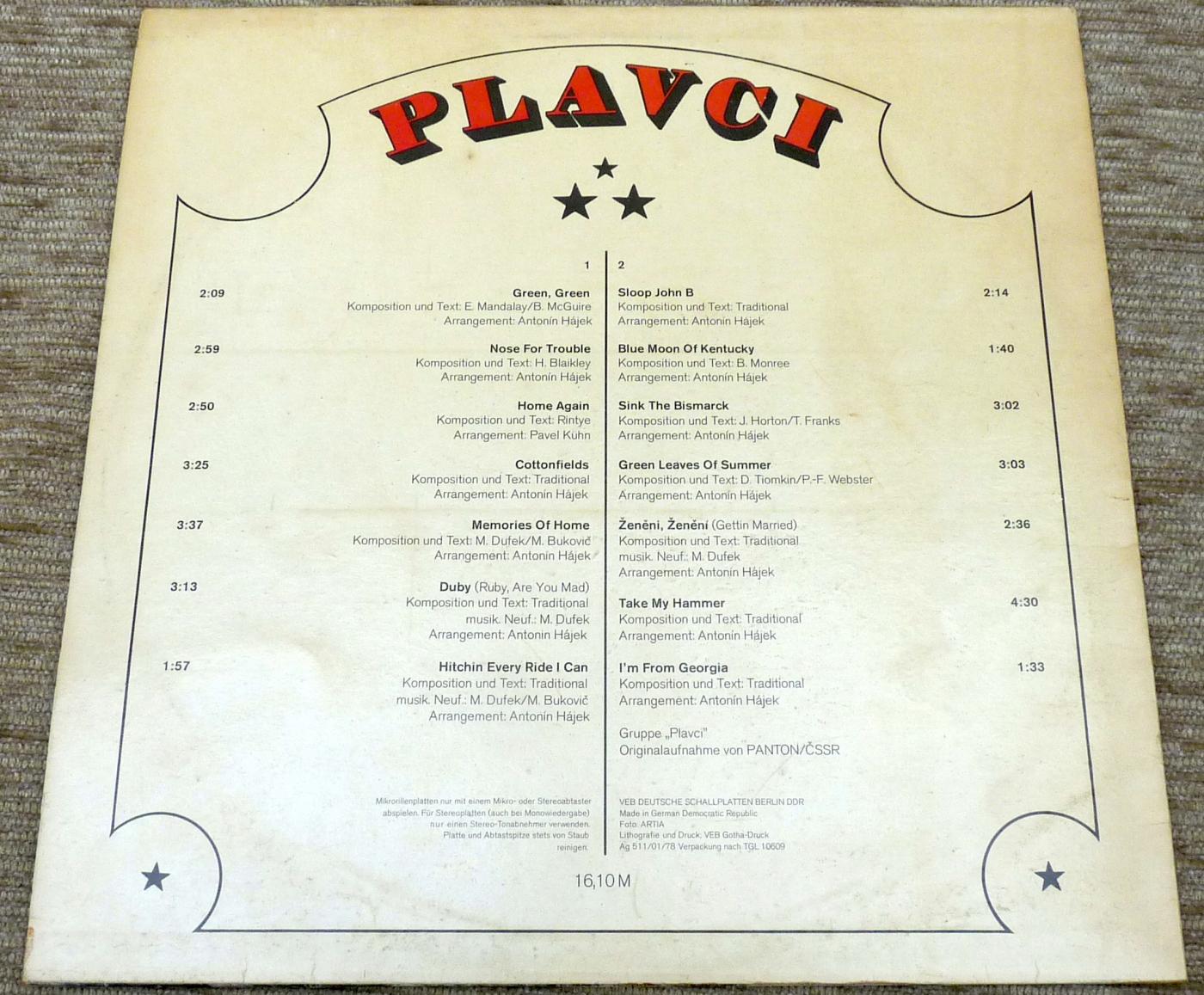 Gut erhaltene, gewaschene LP aus der DDR. Plavci mit Country-Klassikern. Übernahme von Panton, CSSR. |