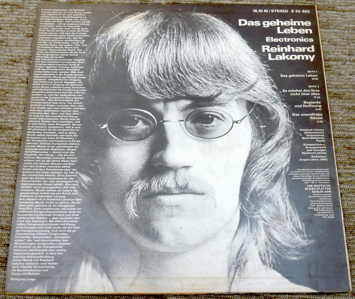 Gut erhaltene, gewaschene LP aus der DDR. Reinhard Lakomy als Electronic-Musiker Das geheime Leben. |