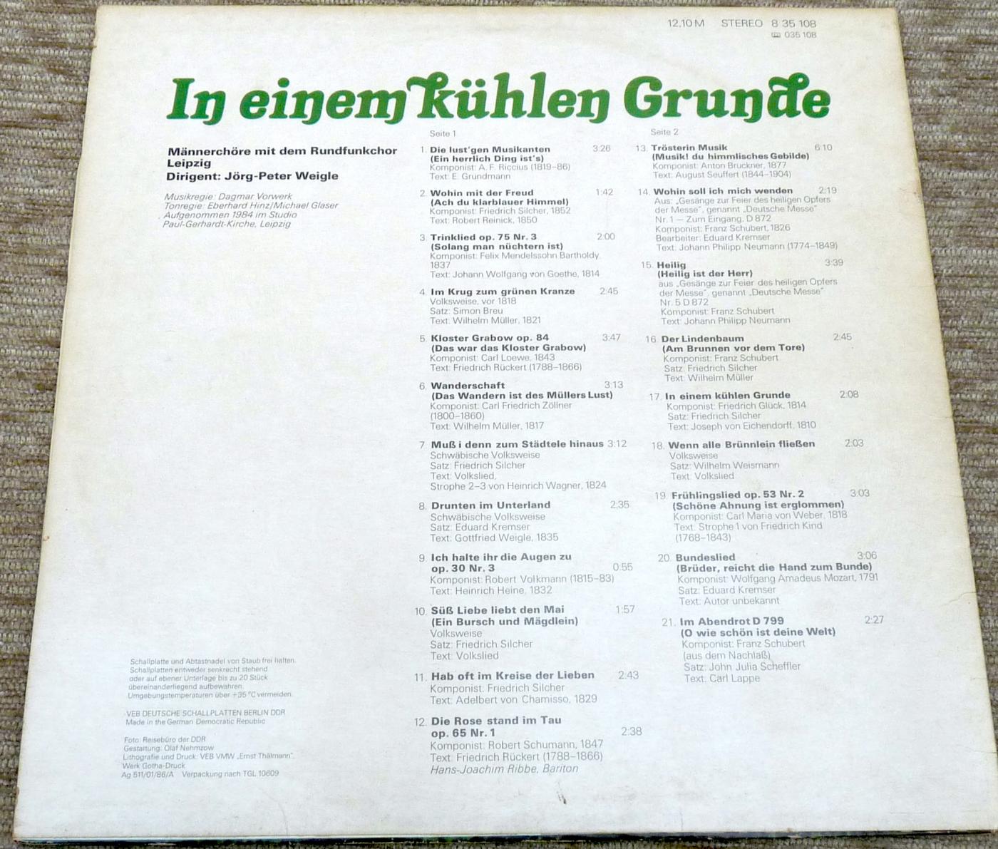 Eterna, 835108, Männerchöre - In einem kühlen Grunde, DDR, 1986 |