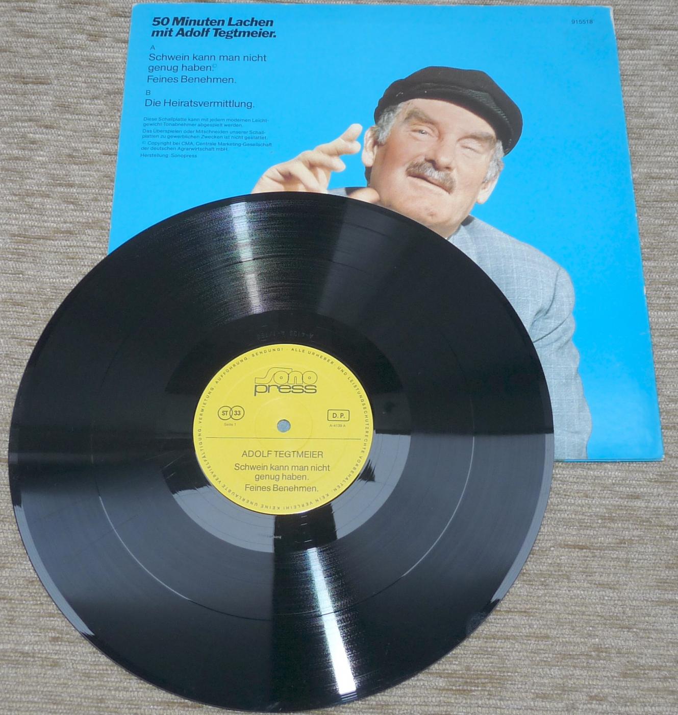 Gut erhaltene, gewaschene LP von Sonopress. Adolf Tegtmeier meint Schwein kann man nie genug haben und andere Stücke. |
