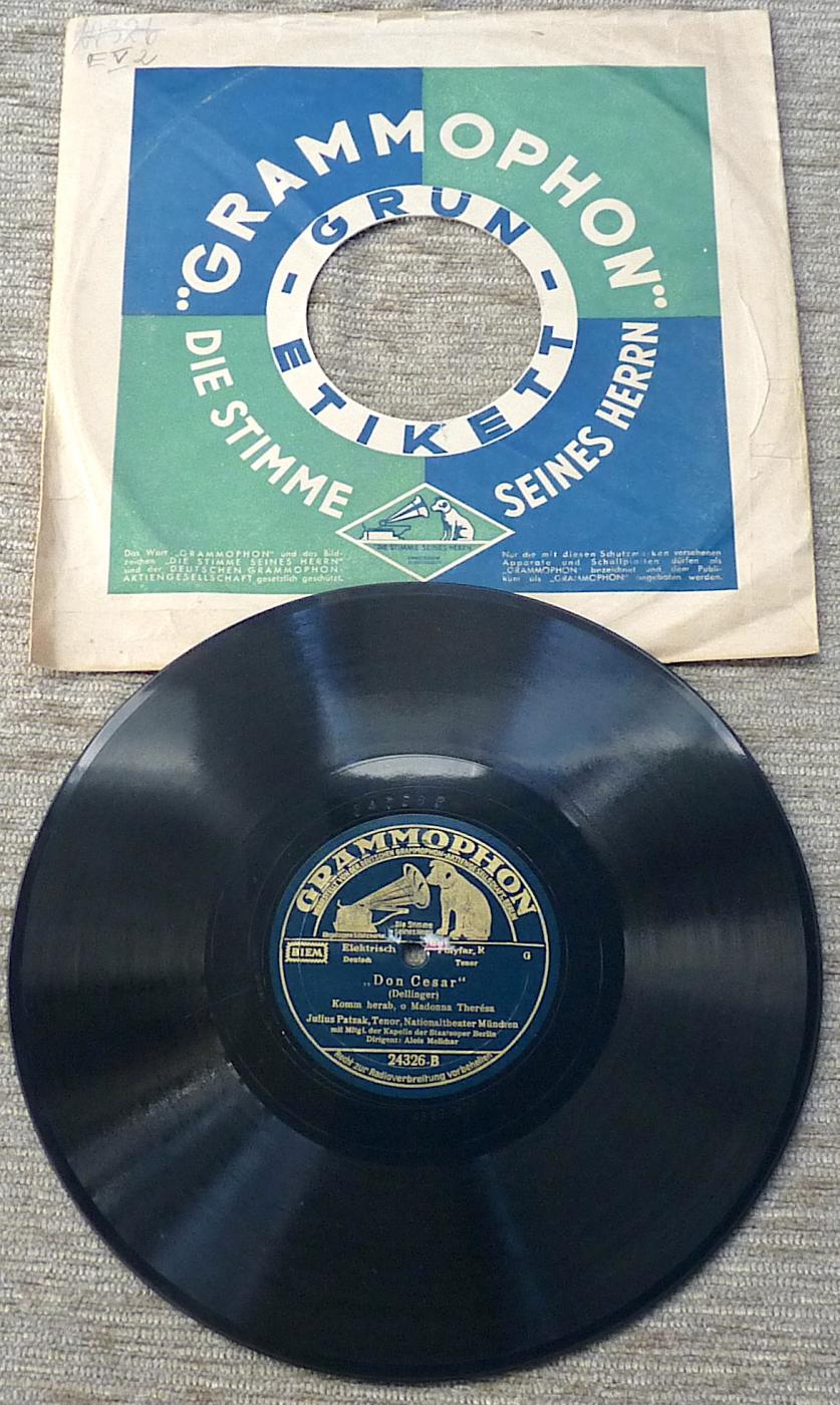 Gewaschene Schellackplatte in guter Erhaltung und fast ohne Knistern. Aus Die Landstreicher (Sei gepriesen, du lauschige Nacht); Aus Don Cesar (Komm herab, o Madonna Theresa) - Julius Patzak, Tenor, Nationaltheater München, Kapelle der Staatsoper Berlin, Alois Melchar |