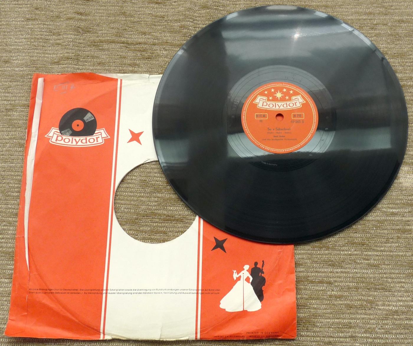 Gewaschene Schellackplatte in guter Erhaltung und fast ohne Knistern. Ja, so en gude Palz-Wei; So a Schwibsel - Kurt Dehn, Stuttgarter Volksmusik. |