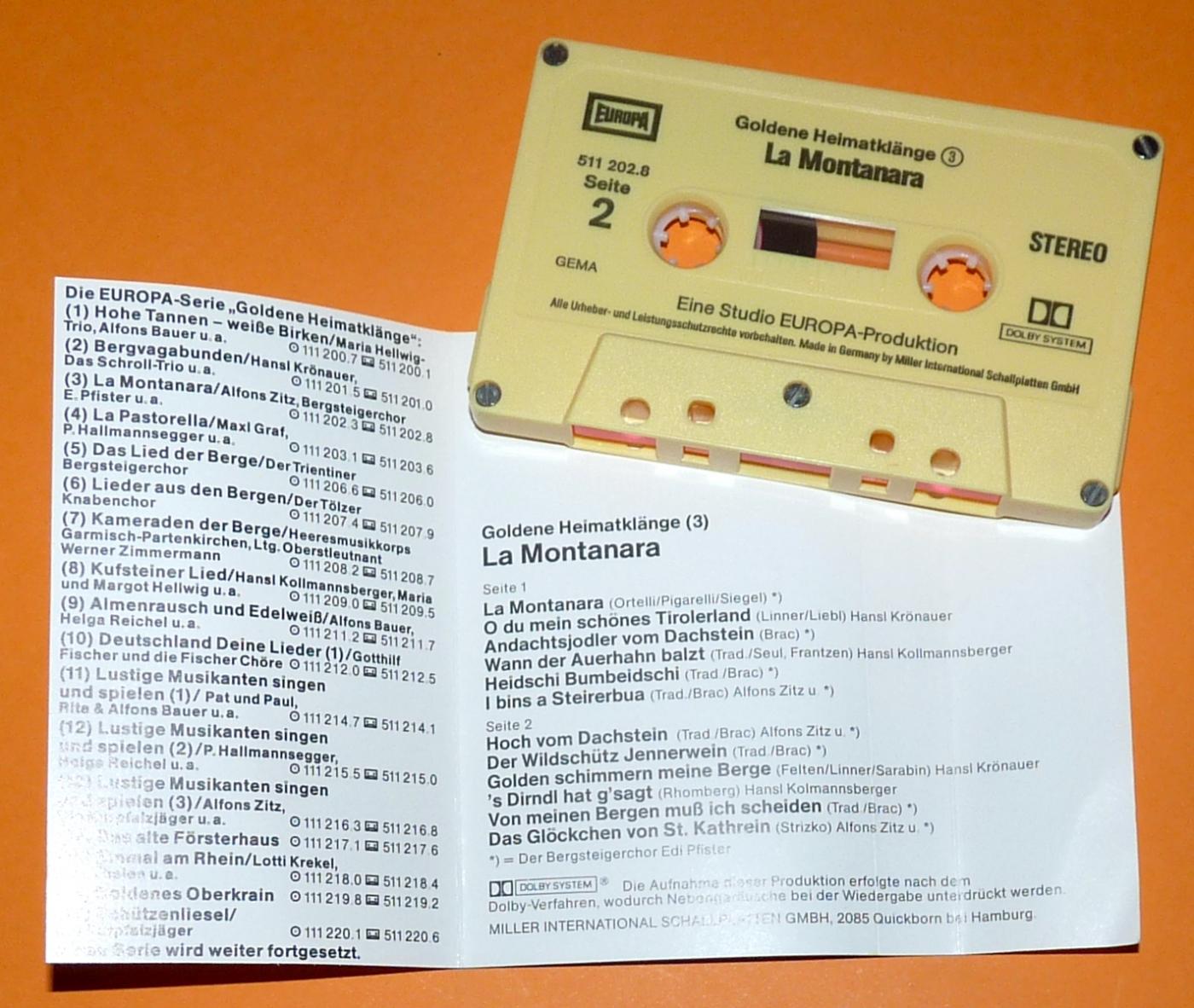 Industriell bespielte Musikkassette mit Originaler Verpackung und Inlet. |