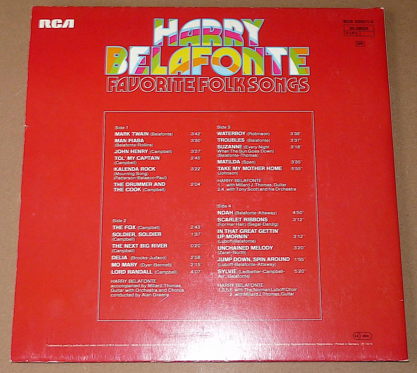 Harry Belafonte - Favorite Folk Songs, 1973, RCA, 2x Vinyl-LP |